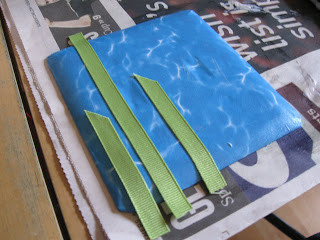 Slather on another coat, sealing the ribbon from the front, then the back. I used clothes pins to clamp the ends down while they dried.