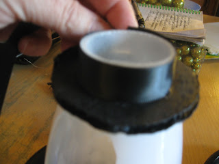 Using thin ribbon (your color choice; we all know what I used), cover the edges of the hat brim.