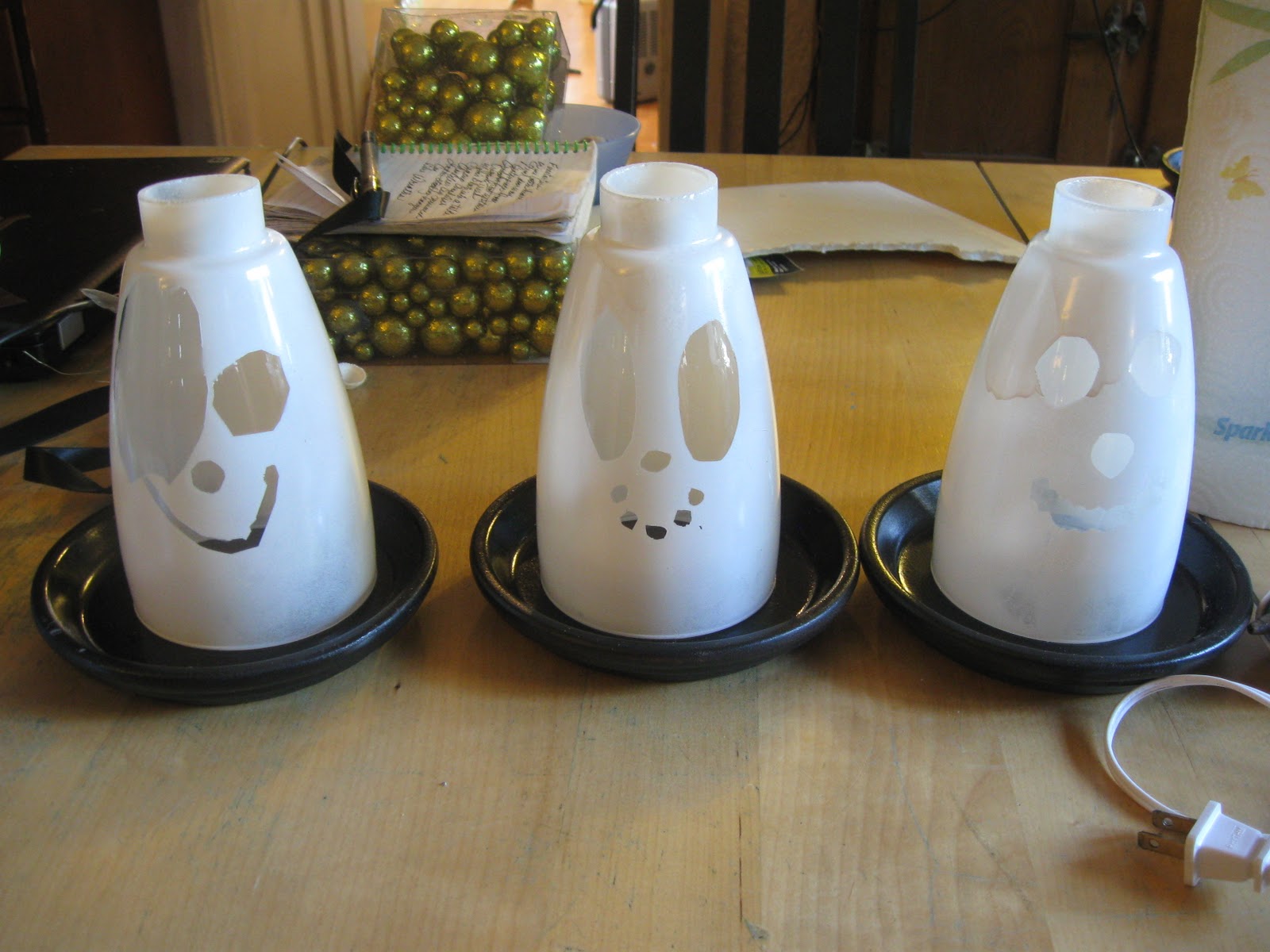 CUTE! Those ghosts are gonna have some competition! I'm still a little apprehesive about the glass projects these days. I did find a temporary fix for Mr. Gumball Machine. I would never have thought that a fish bowl of that size would be so hard to find! :(