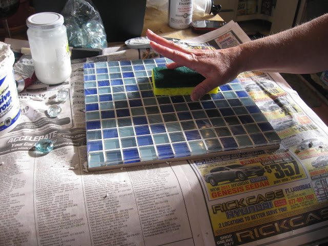 I love those glass tiles! That's a great idea. I have made grouted tile stepping stones for my back yard by breaking up small tiles and creating a mosaic in those terra cotta drip pans that you put flower pots in.