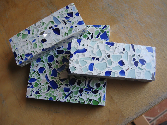 I would so do that recycled glass! I have concrete counter tops in my bathroom with clear glass bits and pieces---love, love love them! My great SIL made them and he scored major points!