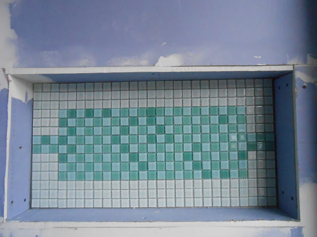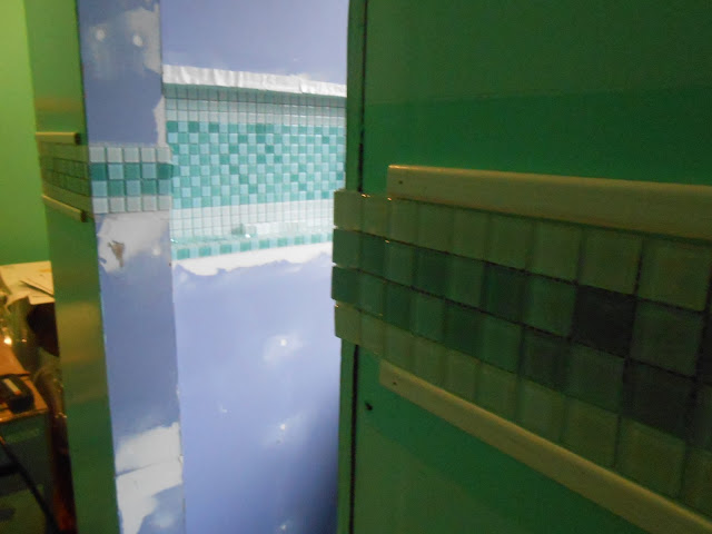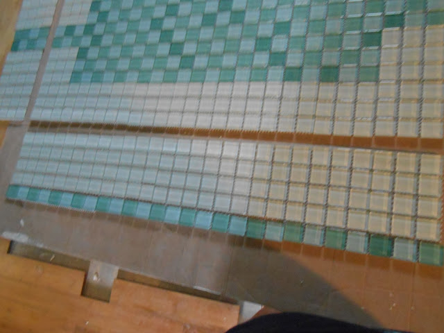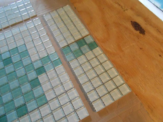 The sheets of glass tile were $4 for the clear and $6 for the aqua checkerboard.