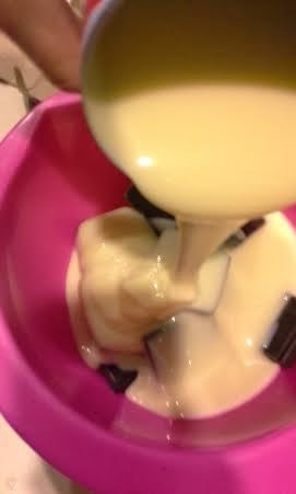 Scrape the whole mess into a 9x9 greased pan and refrigerate.